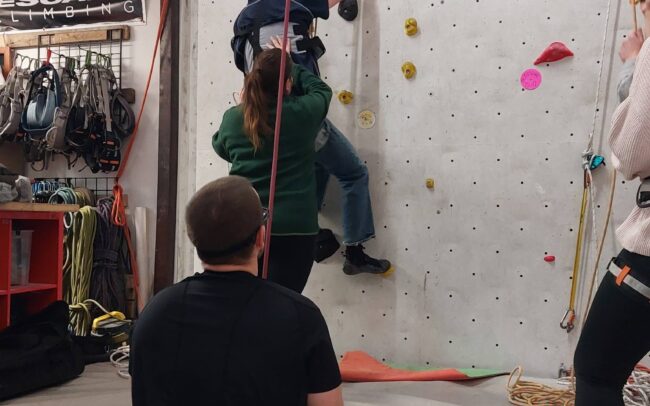 Accès grimpe s’est donné comme objectif d’amener les personnes en situation de handicap vers l’escalade tout en abaissant les préjugés. Parce que repousser ses limites est un objectif qui concerne tout le monde, nous organisons des activités inclusives d’escalade intérieure, mais aussi extérieure ou de glace.